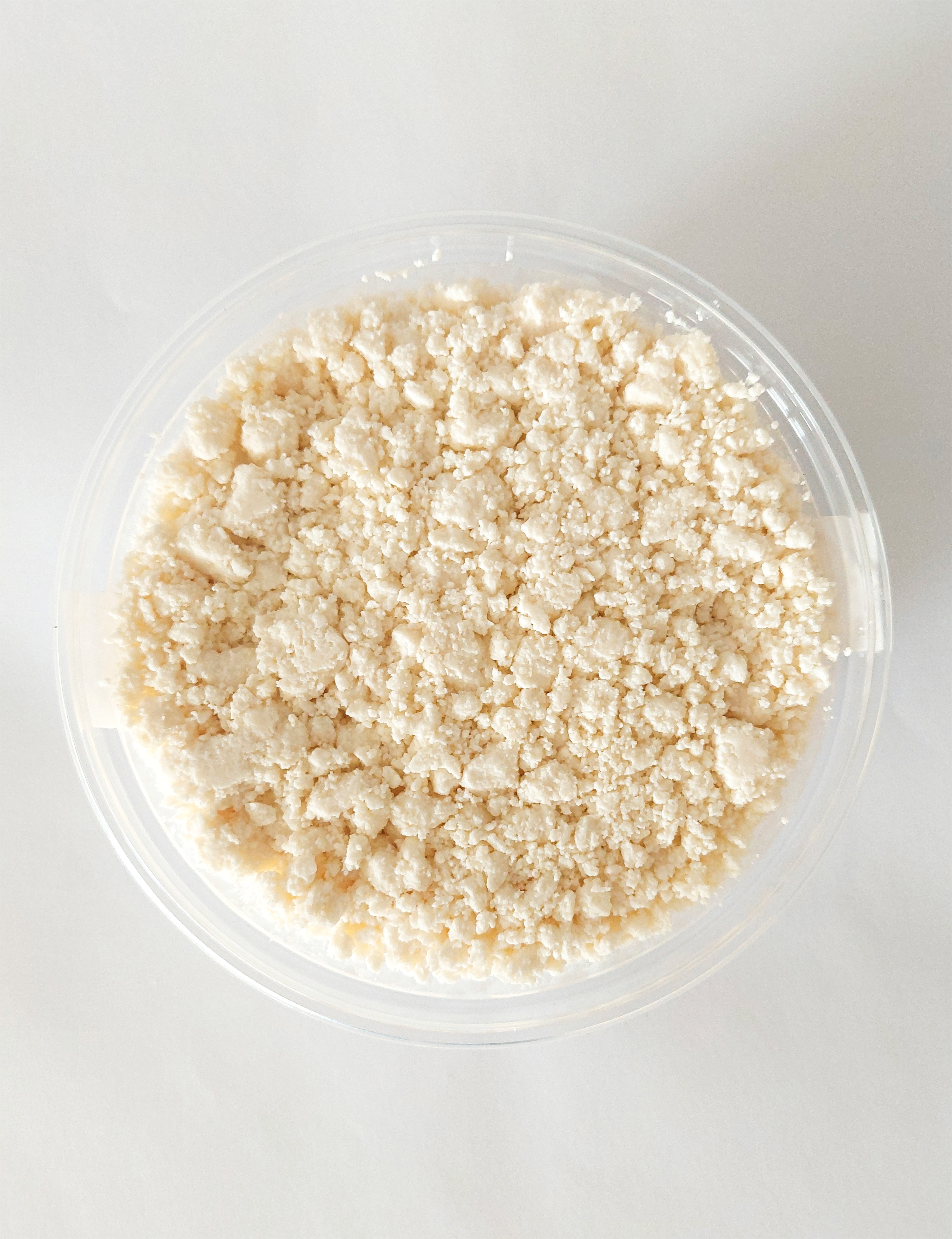 Queso granulado y cremoso, alto en proteínas y de sabor suave. Perfecto para recetas dulces y saladas como pastas, postres y ensaladas.