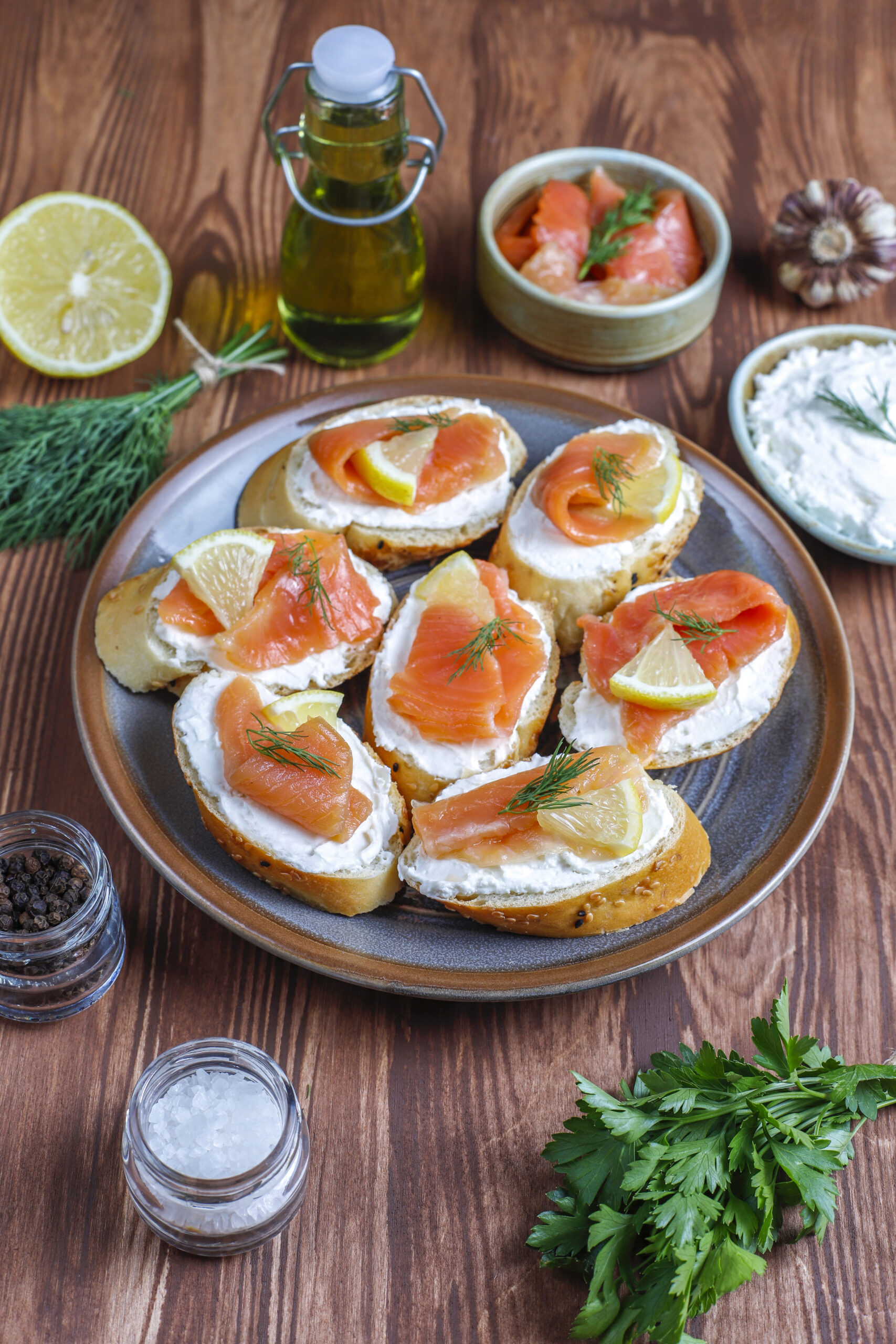 - Corona con las láminas de salmón crudo y, si deseas, un toque extra de eneldo o unas gotas de limón