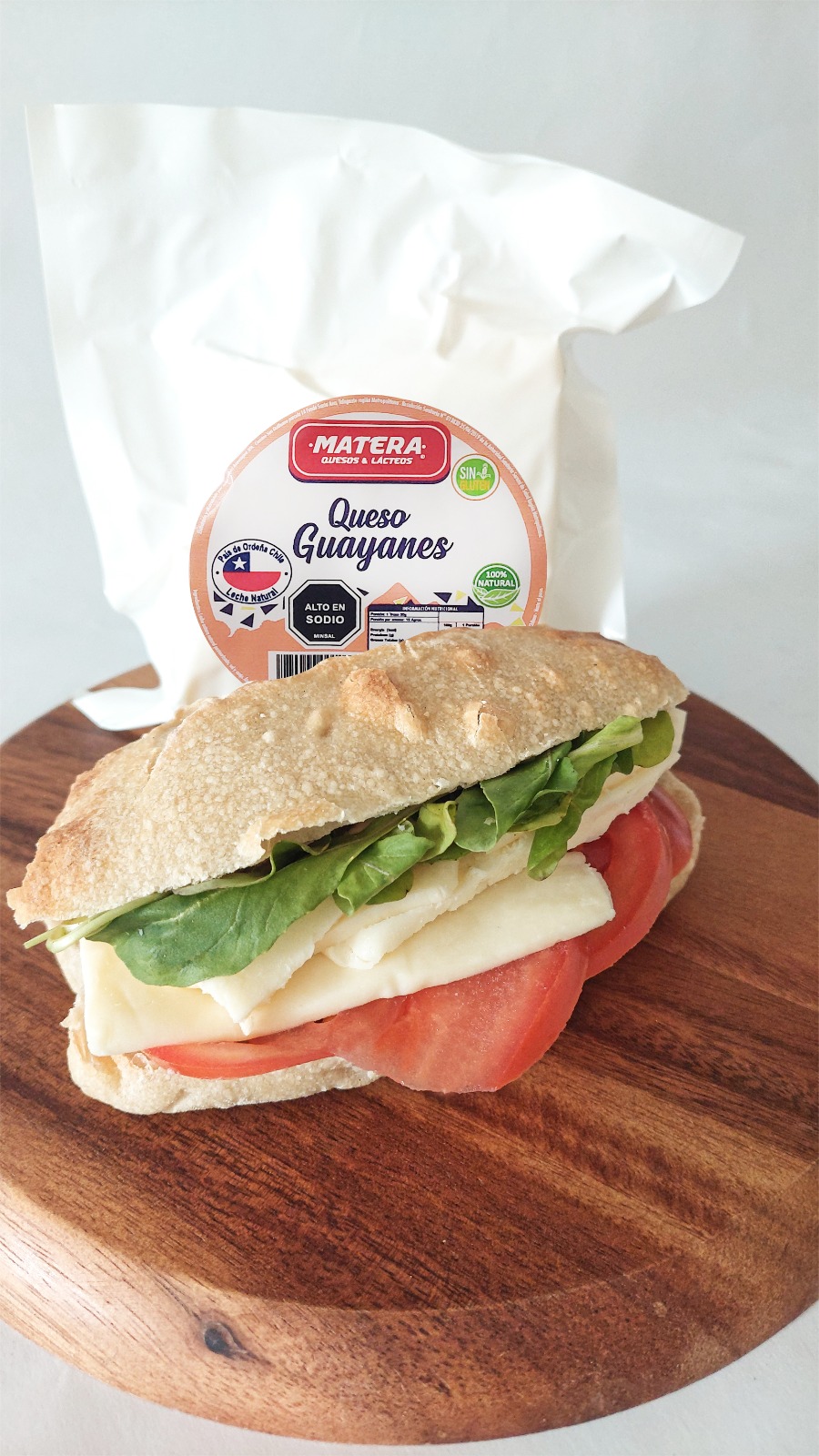 Sírvelos de inmediato para disfrutar del contraste fresco de la lechuga y el tomate con la cremosidad del queso guayanés Matera en pan ciabatta. Ideal para un almuerzo rápido o un picnic.